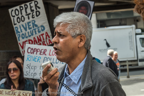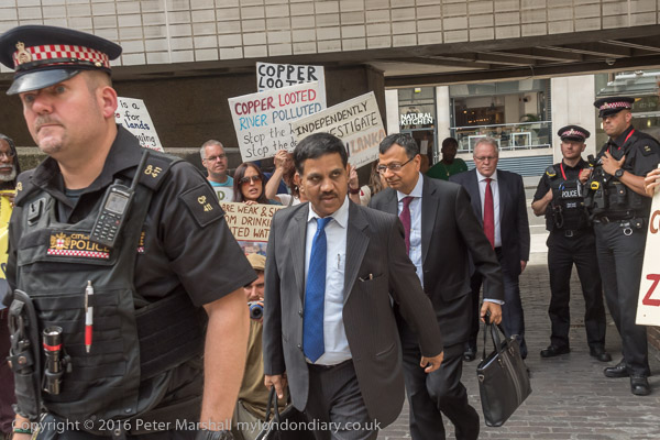 owns over 2/3 of Vedanta was escorted by police through a back way - but the protesters saw him and shouted at him