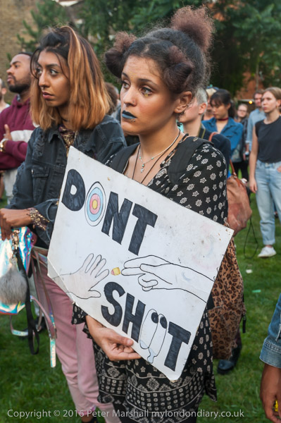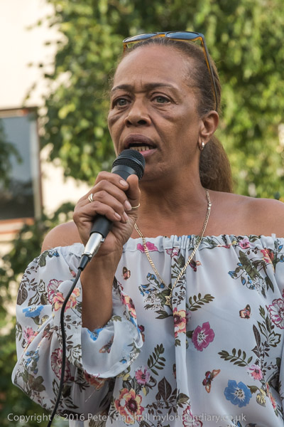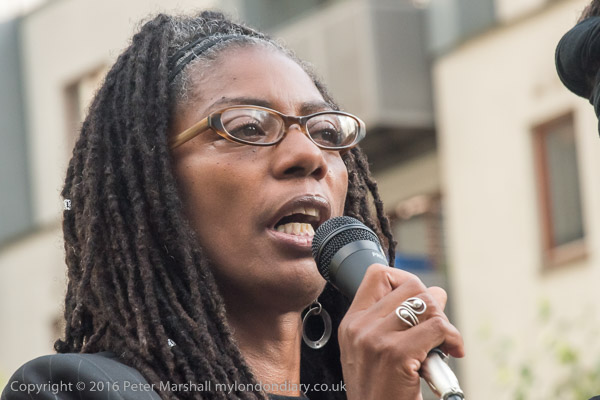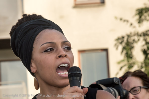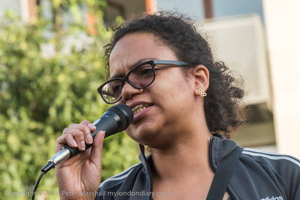Antonia Bright of Movement for Justice speaks in Altab Ali Park in East London about the