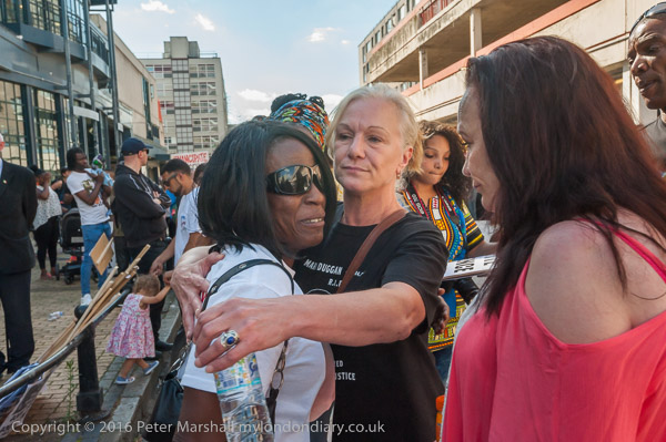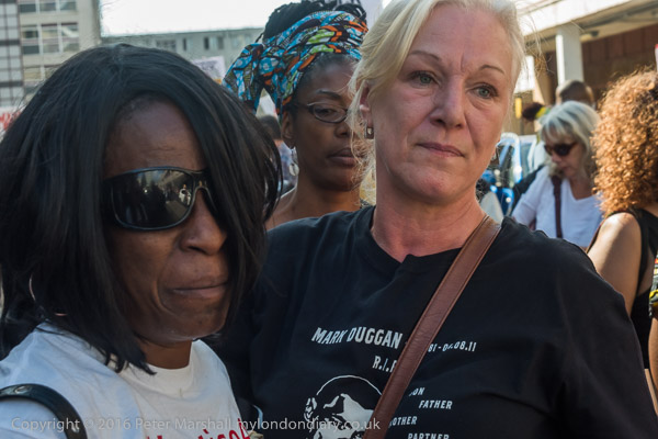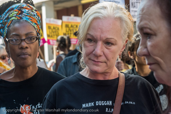 Marcia Rigg, sister of Sean Rigg and Mark Duggan's aunt Carole Duggan, and at right his mother Pamela