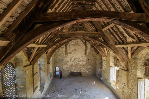 ![]() The castle is worth a visit, and has a good audio guide and pictures on its web site. Contact English Heritage for any pictures for commercial use - these are just for personal viewing. ![]() The roof of the Great Hall. The building dates from the end of the 13th century when it was built for Laurence of Ludlow ![]() The kitchen ![]() The Great Hall. ![]() Stairs lead up from the Great Hall into rooms in the North Tower ![]() ![]() ![]() The windows looking out from the Great Hall on the outside of the manor were never glazed, but had shutters ![]() though these don't appear to have ever been a tight fit. There was no chimney for the fire -on the hexagon in the centre of the picture, so plenty of ventilation was needed to allow wood smoke to escape ![]() The 17th century gatehouse from the first floor of the manor house |