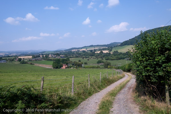 It was a little clearer now, but still hazy in the distance as we walked down, going through Stoke Wood to Stokesay