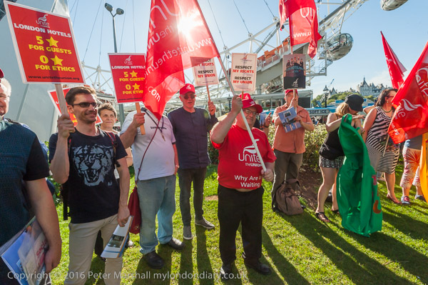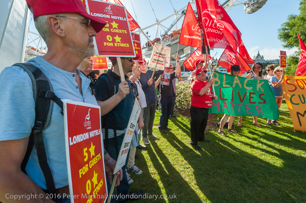 London Eye secuirty tell us they own this part of the public walkway and protests are not allowed'