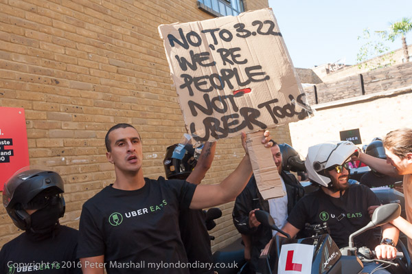 Security men outside the Uber offices told me they were not coming, but on my phone I watched a brief video clip of them leaving Aldgate