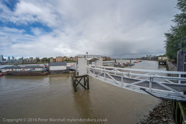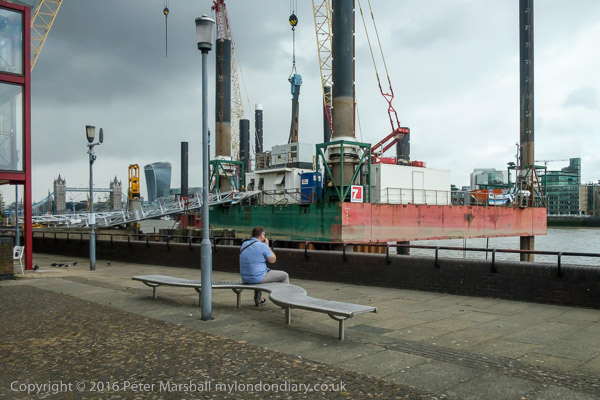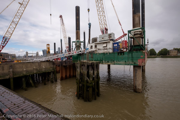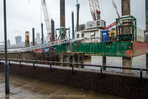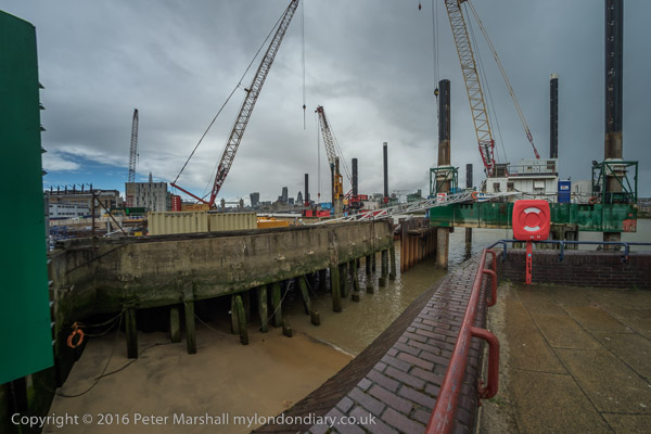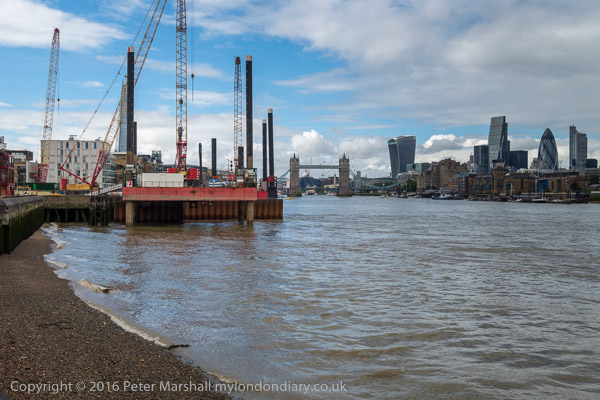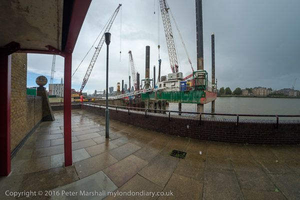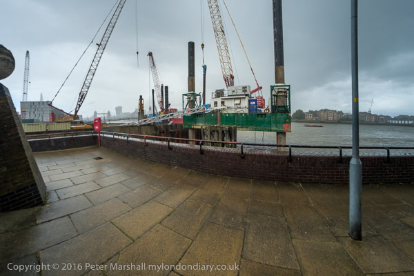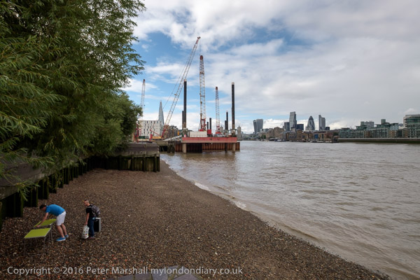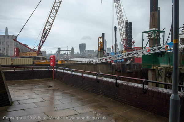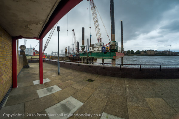 The path goes back to the river at the east of Chambers Wharf - now a large building site for the Thames Tideway super-sewer