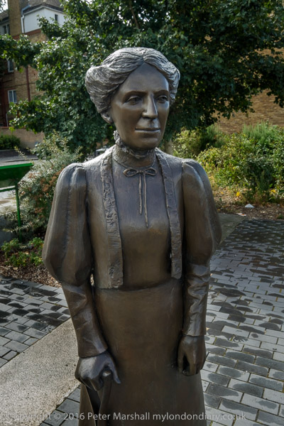 A local fundrasiing campaign enabled the scuplture to be replaced, with the additional figure of Ada Salter (there work also