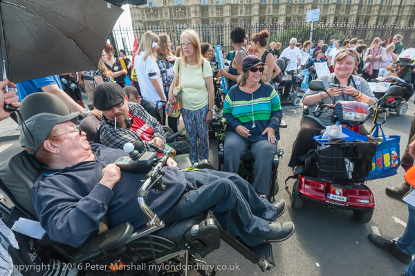 One carer who refused to move away from the disabled person he was looking after was arrested and taken to a police van