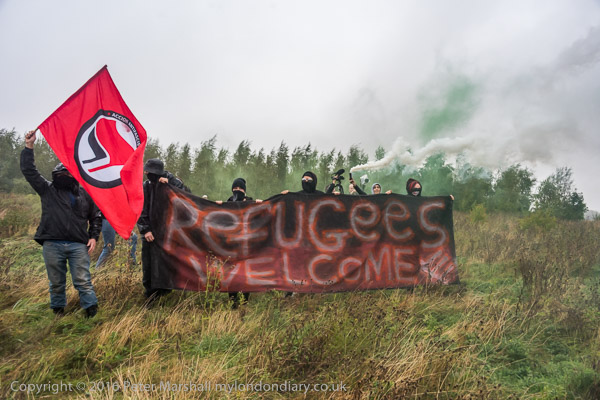 Anti-fascist banner 'Refugees Welcome'
