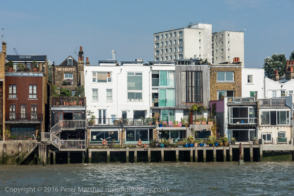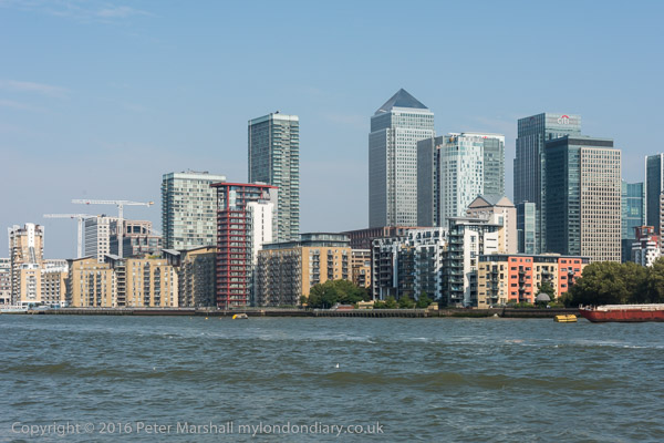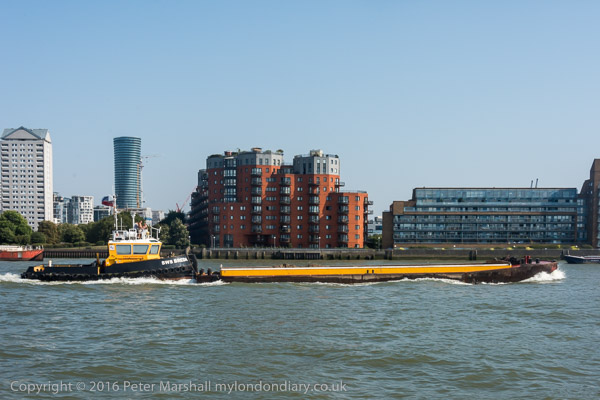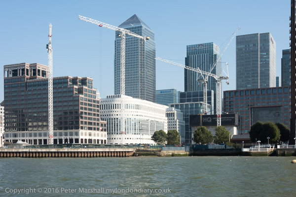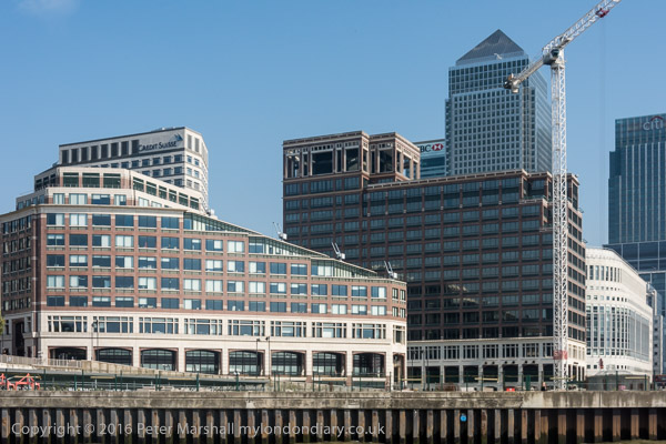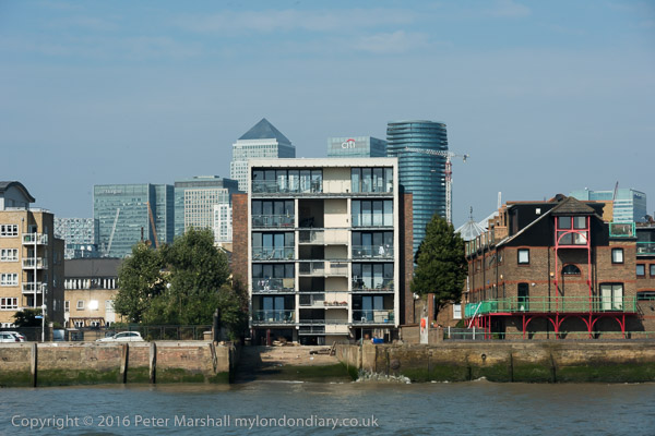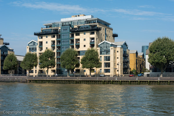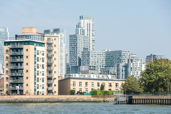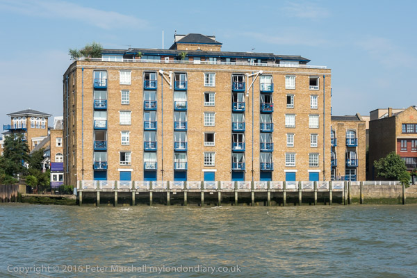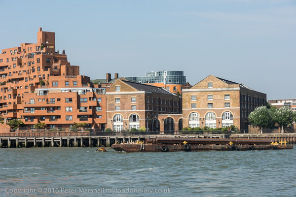On the South bank, these listed sheds are the 1840s Olympia Warehouse on the Convoy's Wharf site