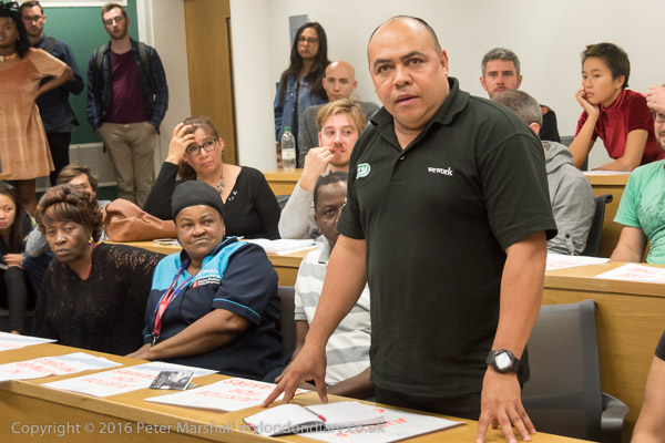 next to him was one of the cleaners who had lost his job at SOAS because of his union activites and was now at the LSE