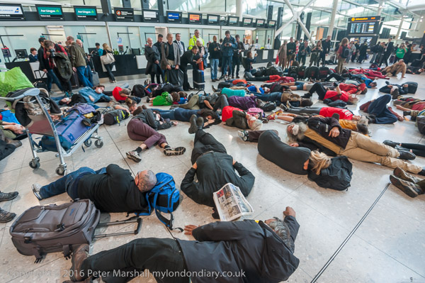 for the protest to start at 13.30 hrs. Some people looked more like travellers than others, though some protesters