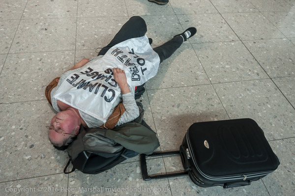 A few people opened jackets to reveal 'No Third Runway' t-shirts