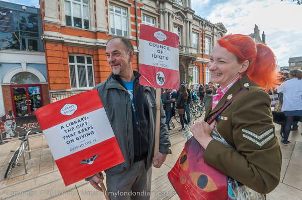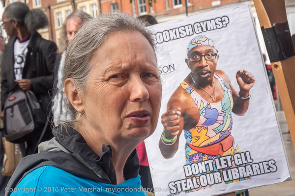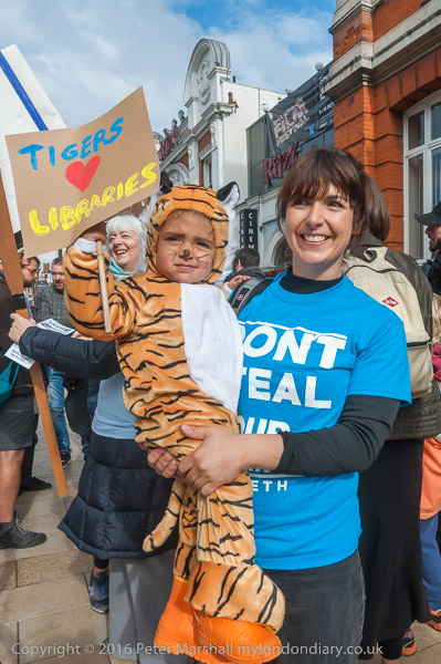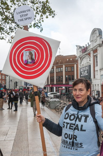 And a bear with a t-shirt 'Don't Steal our Libraries - Lambeth'