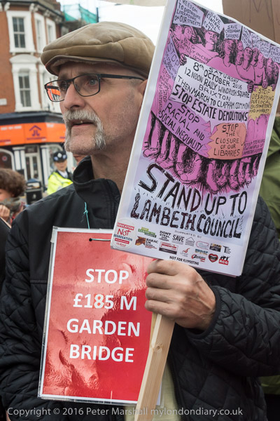 Protesters against the 'Garden Bridge' wait for the march to start