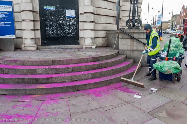 At Lambeth Town Hall the steps are soon coated with glitter