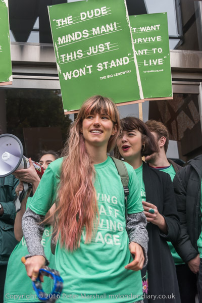 The Hackney Picturehouse strikers were in green t-shirts and had green placards
