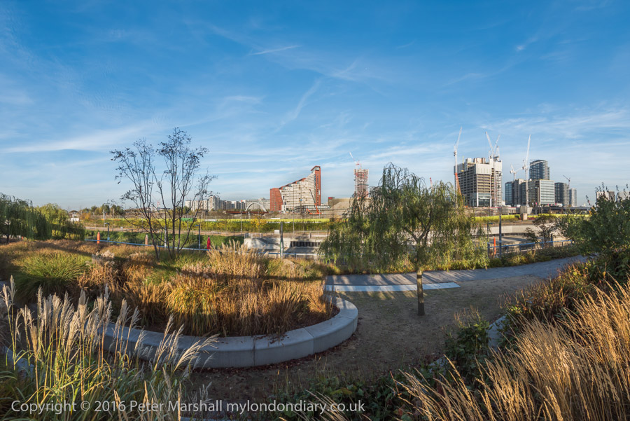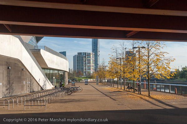 is beside the Waterworks River. Mid-afternoon on a weekday and the walkway is empty
