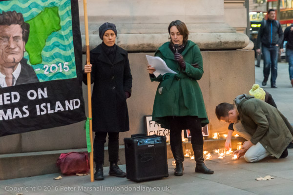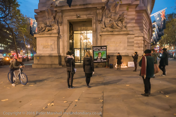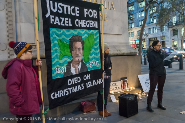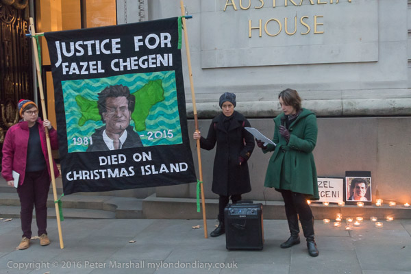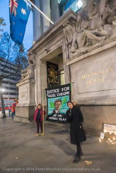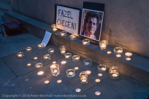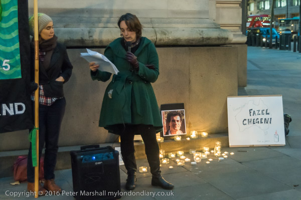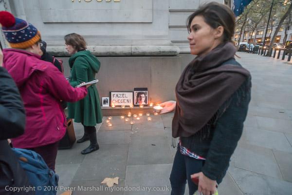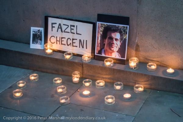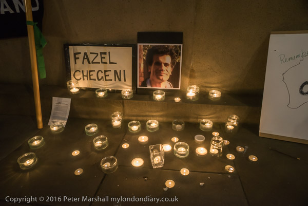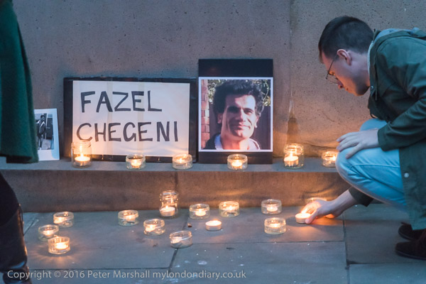 People prepare for the vigil calling for Justice for Fazel Chegeni,