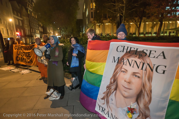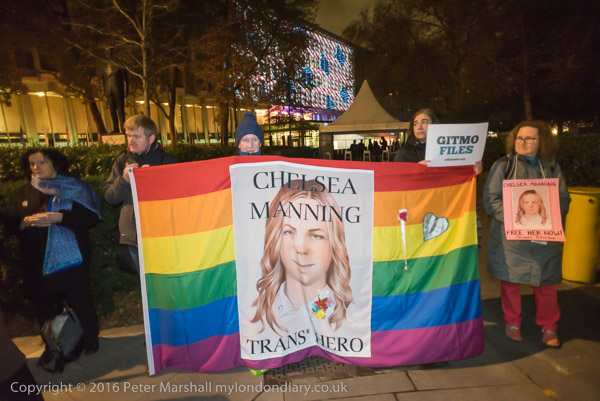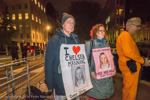 People with Queer Strike posters calling for the release of Chelsea Manning