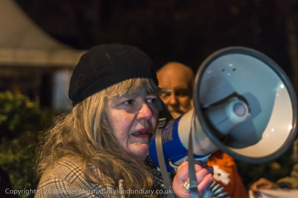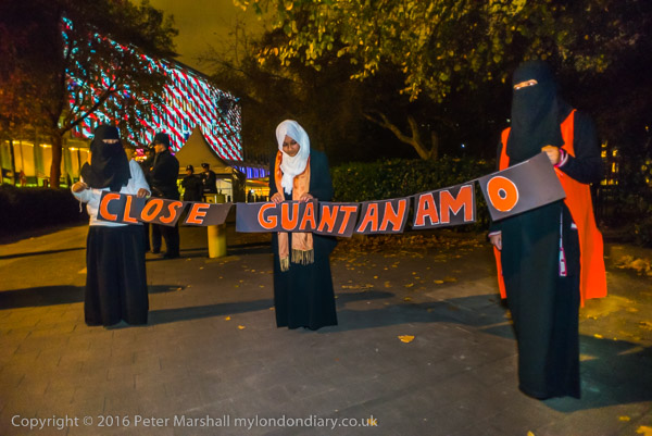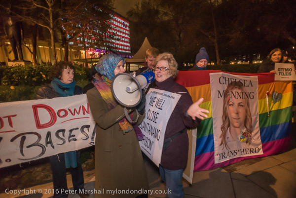 Val Brown of the London Guantánamo Campaign arrives after being held