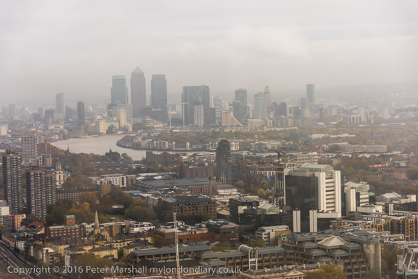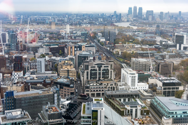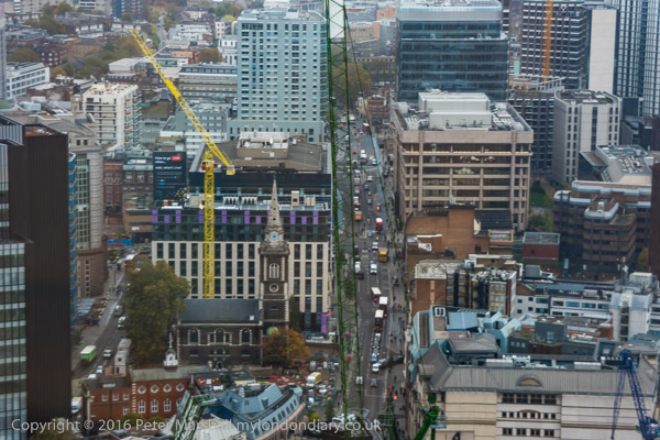 Looking west, the Thames upriver and at right, Cheapside