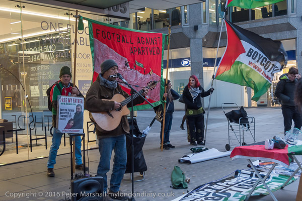 'Football Against Apartheid' and Palestinian flags calling for a boycott