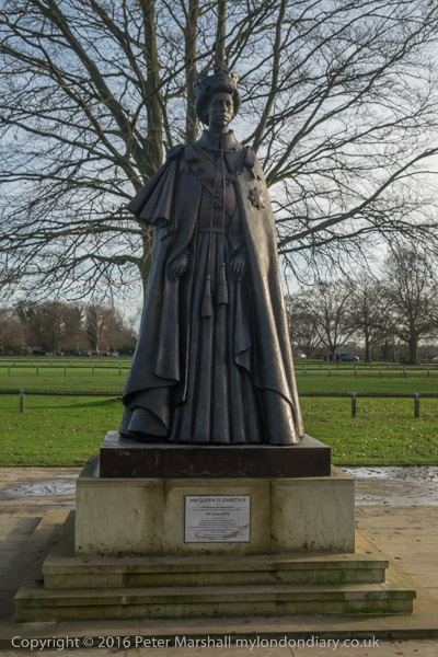 Hard to know why anyone thought it appropriate to erect a statue of the Queen (based on very old photographs)