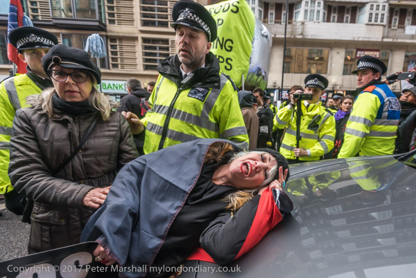 Police block in Class War beside a parked car