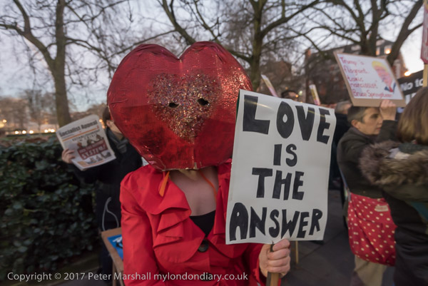 'Oh Shit. No to hate, No to walls, No to Trump who just appalls'