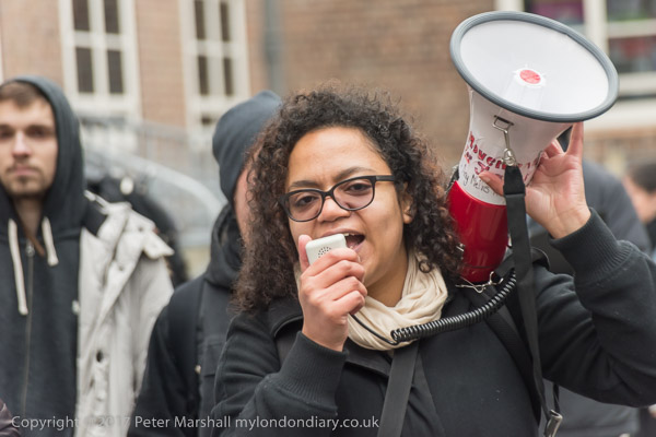 Antonia Bright of MfJ introduces the protest