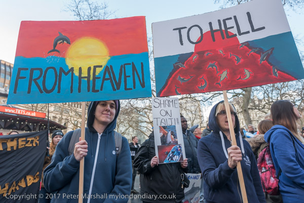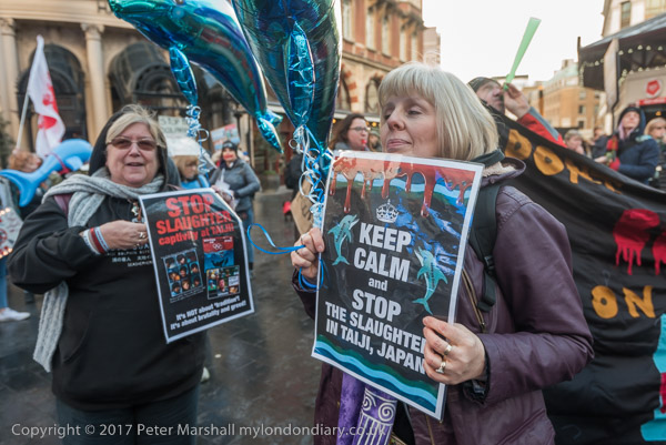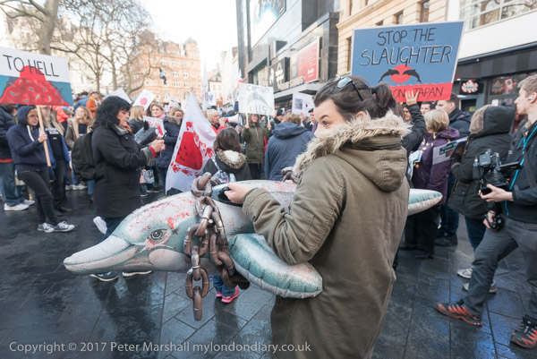 Many of those protesting were from Sea Shepherd which uses direct action tactics to protect marine life