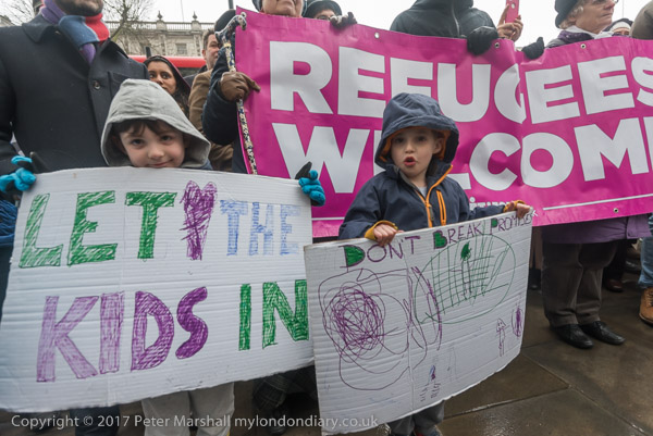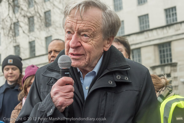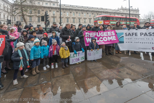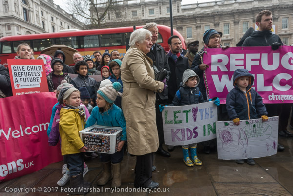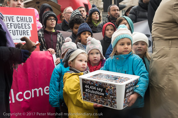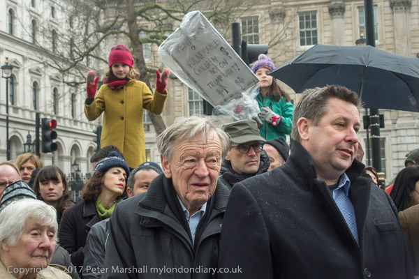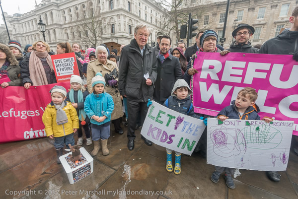 Lord Alf Dubs was stanind behind the children in the crowd