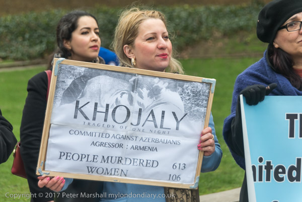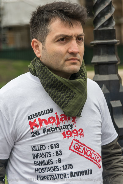 Some wore t-shirts with details of the Khojaly massacre of 26 Feb