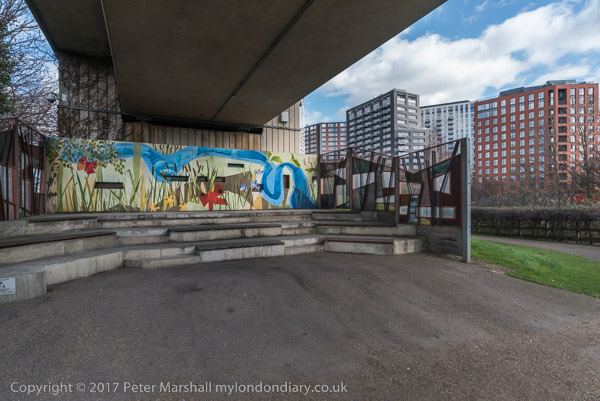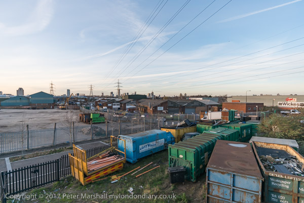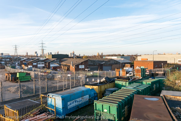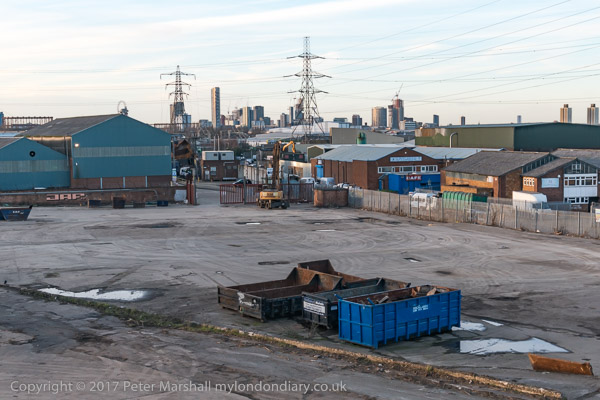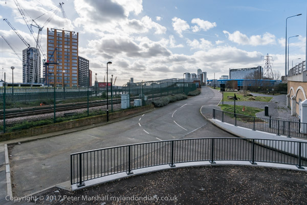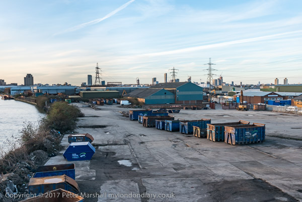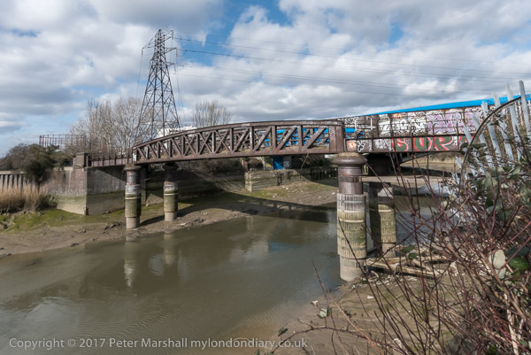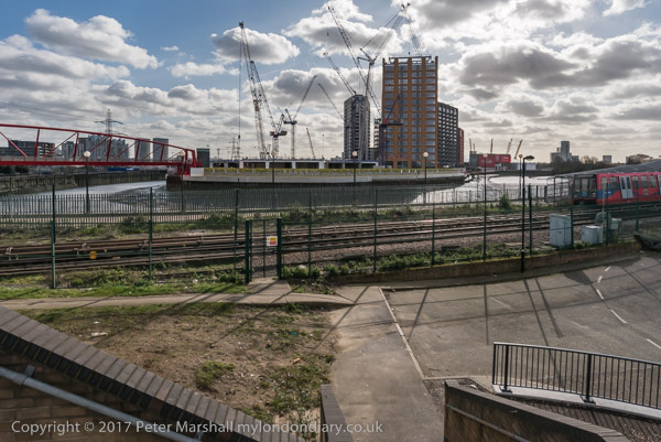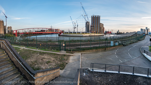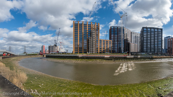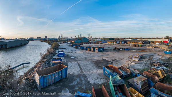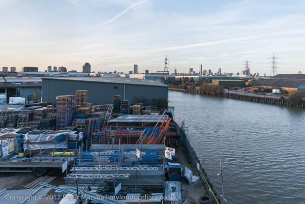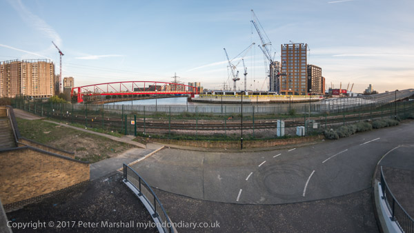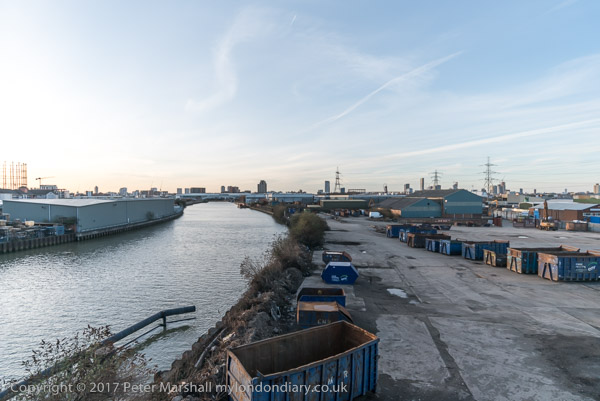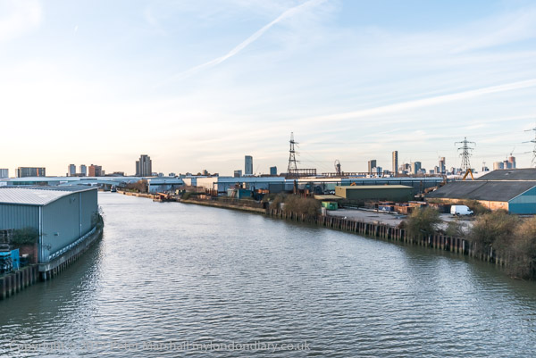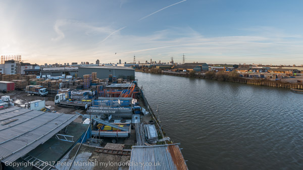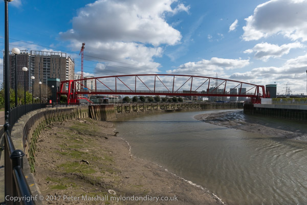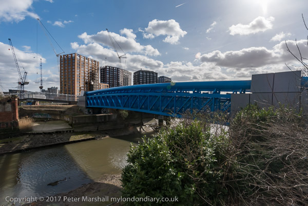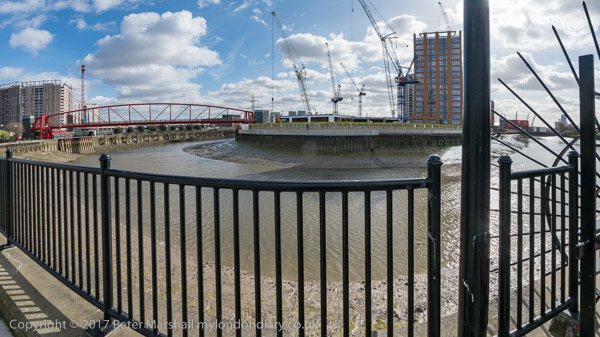 The pipe bridge by Cody Dock is just visible, as well as some buildings