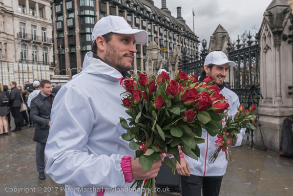 THe young Russian men get a briefing about handing out the roses