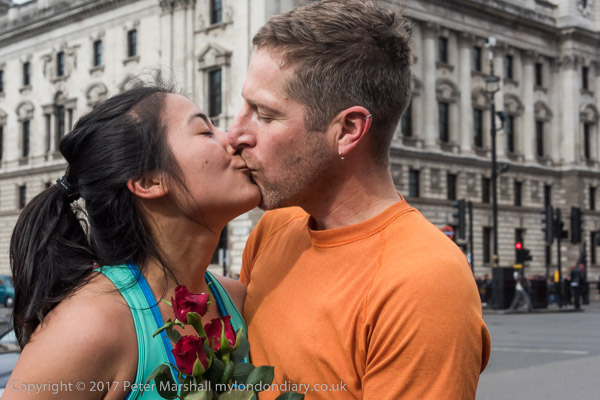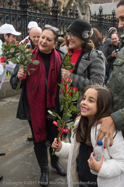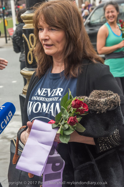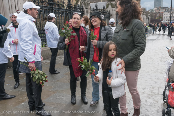 Some stop to talk with the women - and for Russian TV to film them