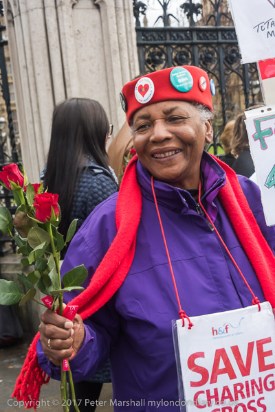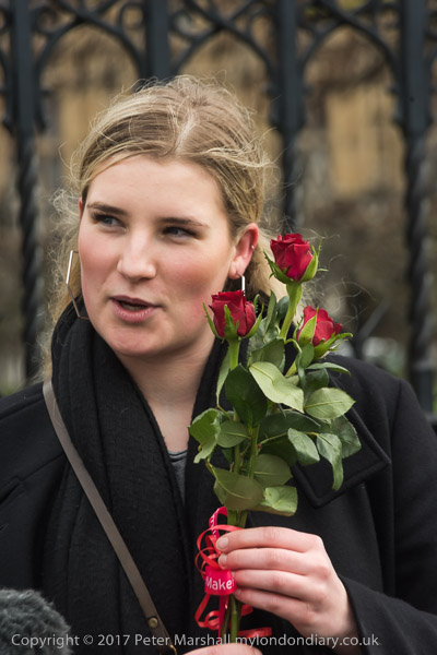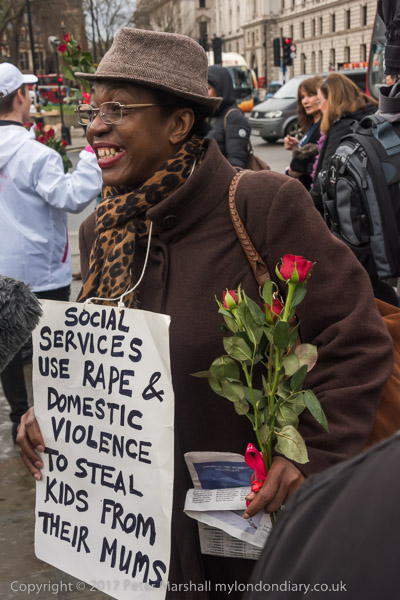 One woman was on her way to protest with a placard on string around