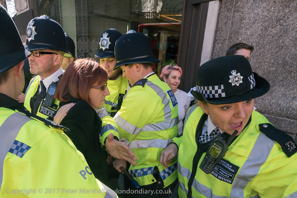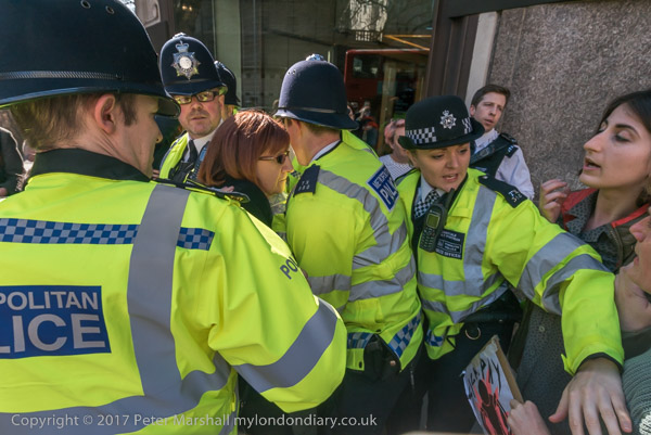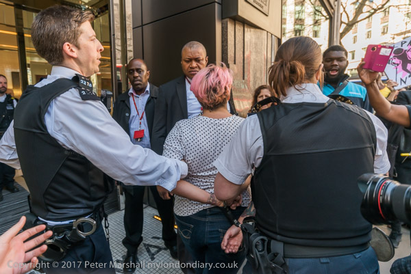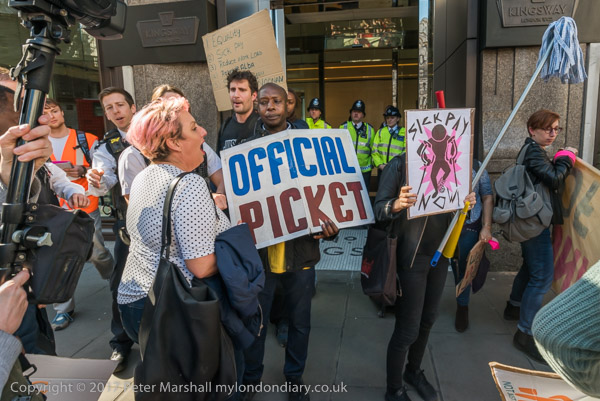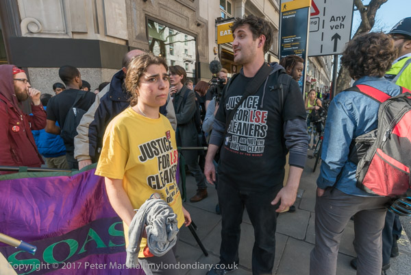 Outside 1 Kingsway at the end of the LSE cleaners protes,
