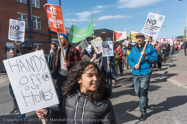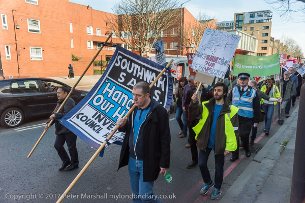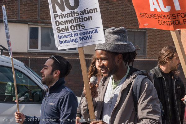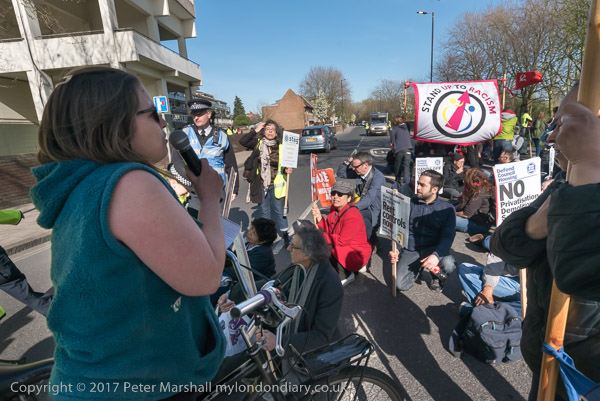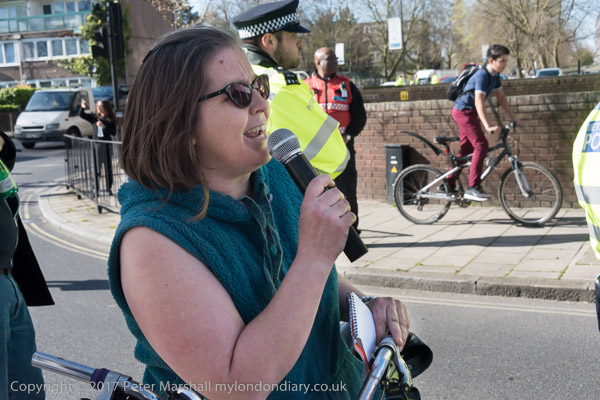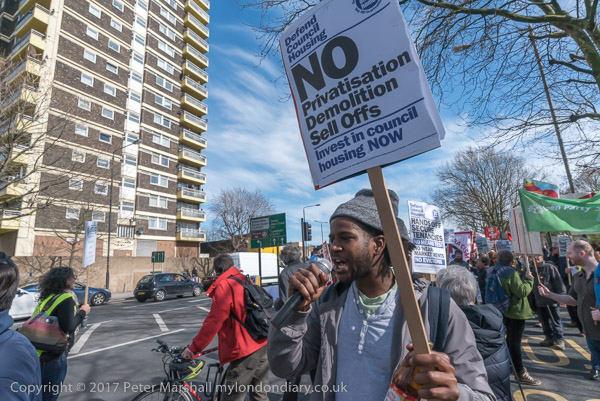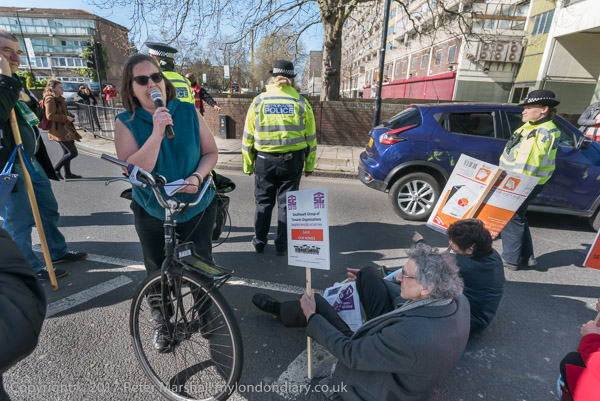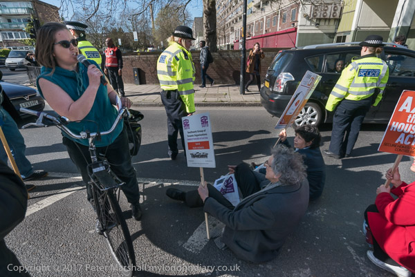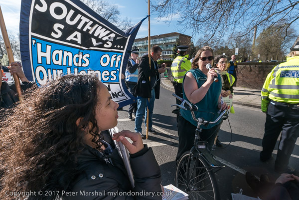 An Aylesbury estate resident speats at the sit-down on Albany Rd