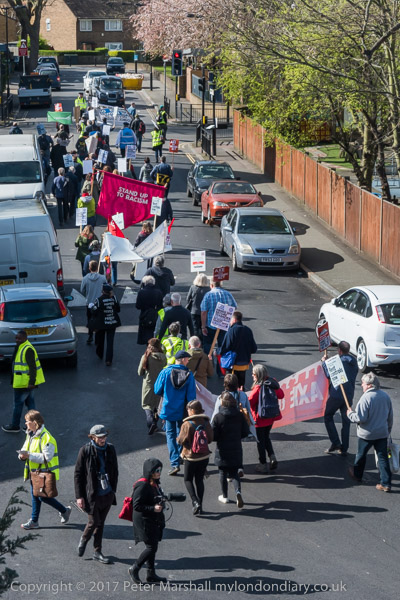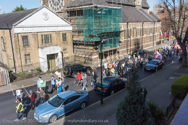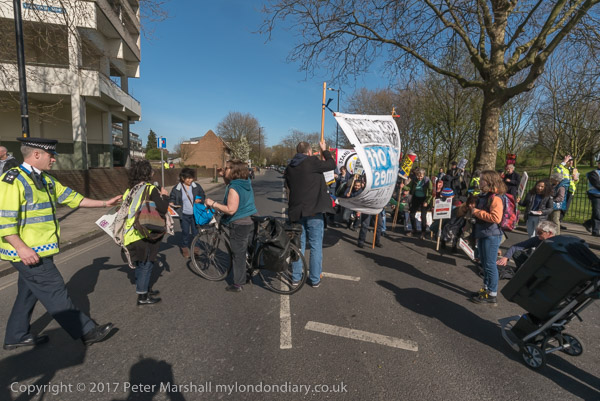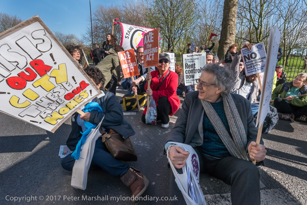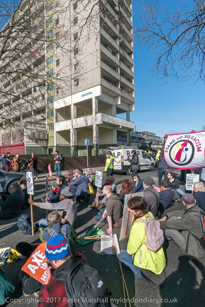 Protesters begin their sit-down on the road opposite outside Thurlow