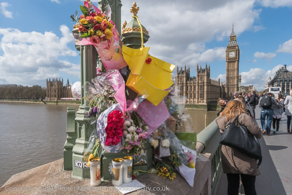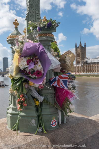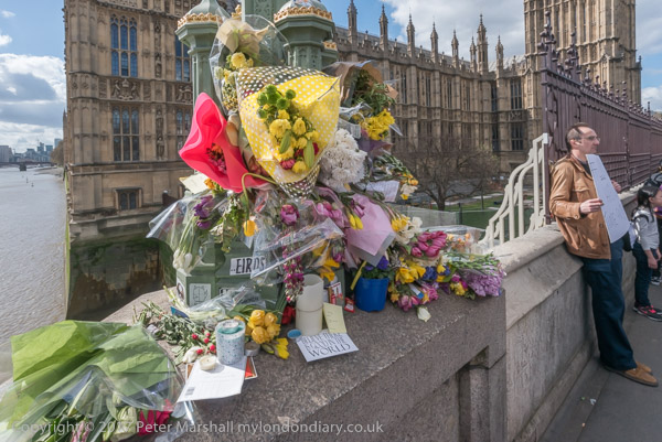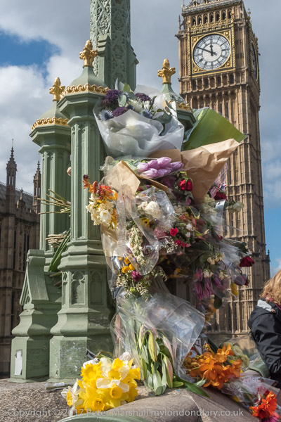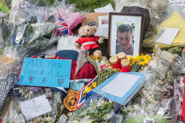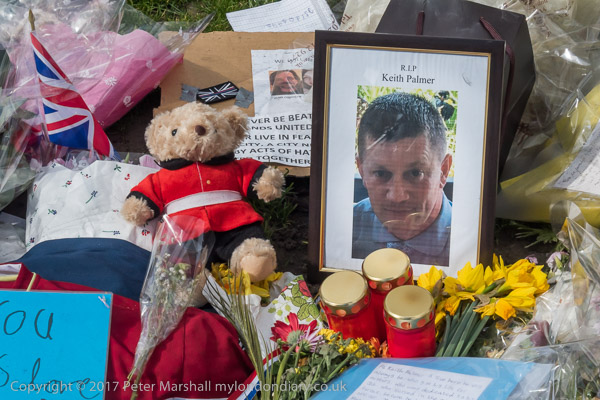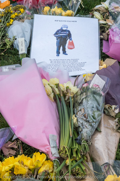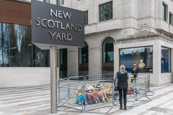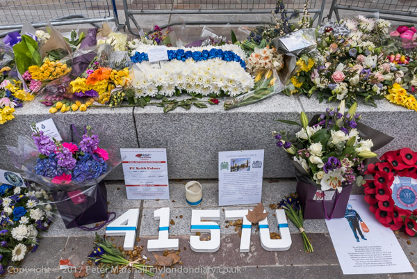Later I photographed the tributes to Keth Palmer outside New Scotland