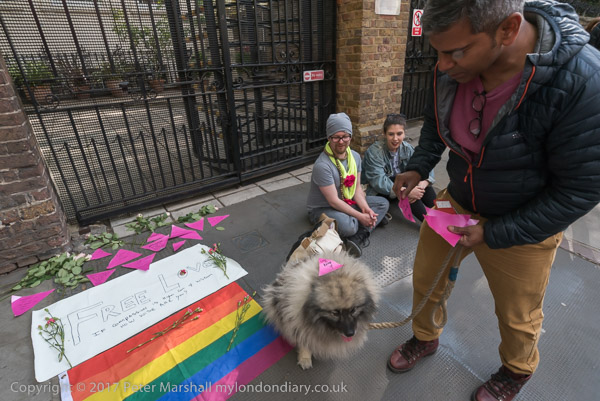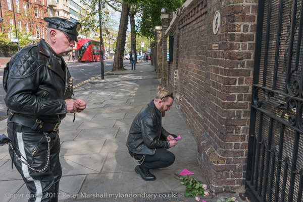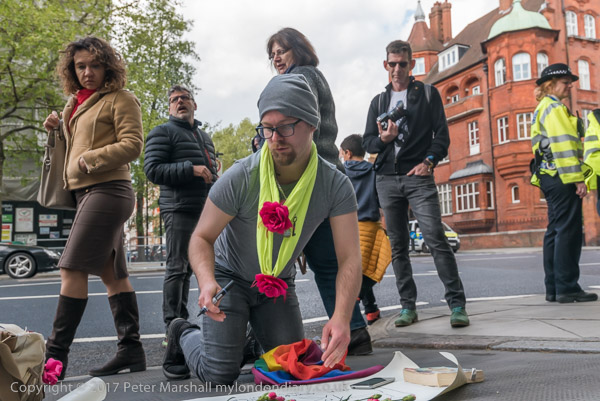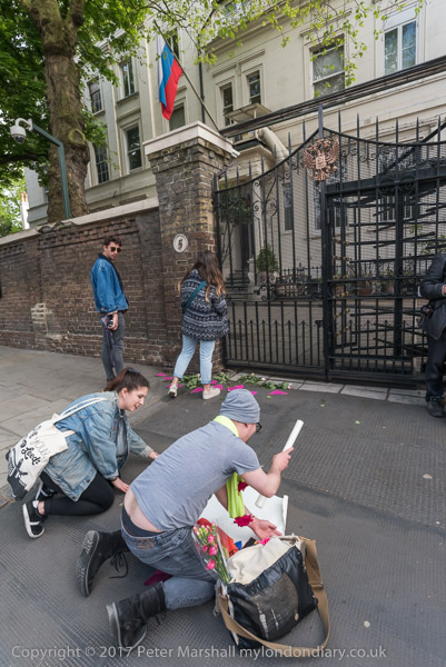 Setting up a pavement shrine outside the Russian Consulate in Kensington