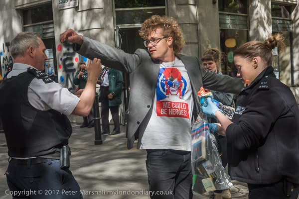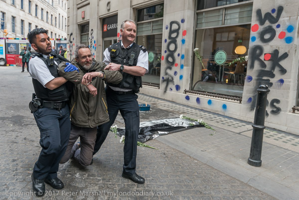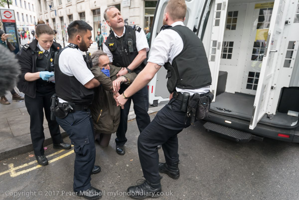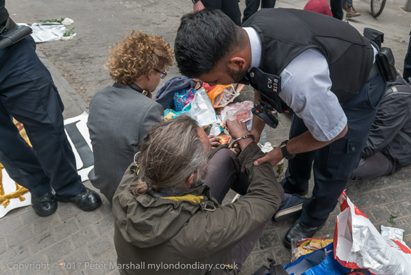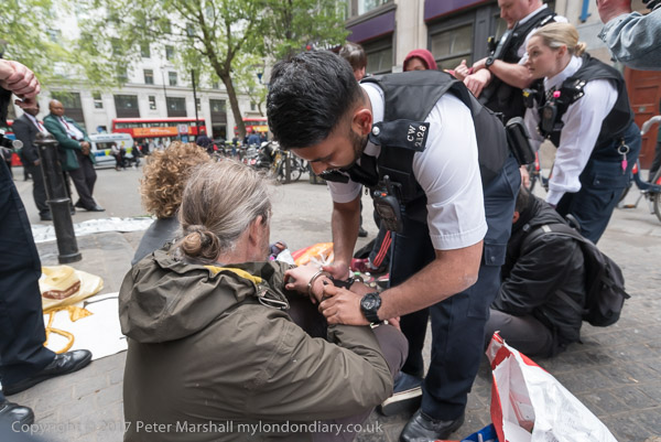 A police officer handcuffs Roger Hallam who organised this 'Life Not