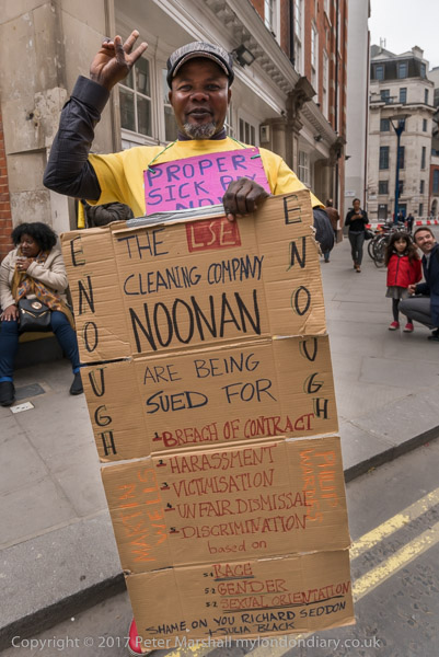 Noonan employs the cleaners at the LSE and the cleaners get low pay,