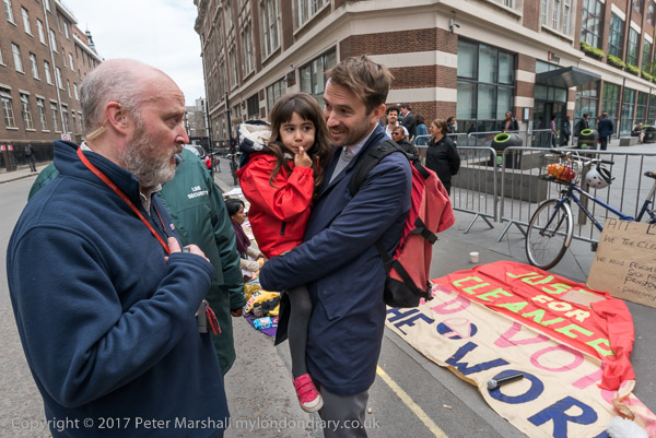 Trenton Oldfield has brought his daughter with him to show solidarity