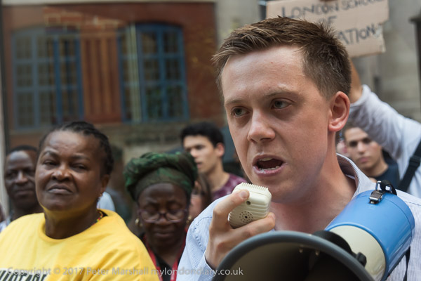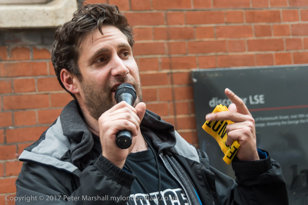 LSE cleaners and supporters carry their banner 'L$E - The London school