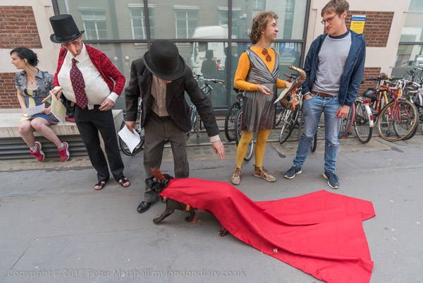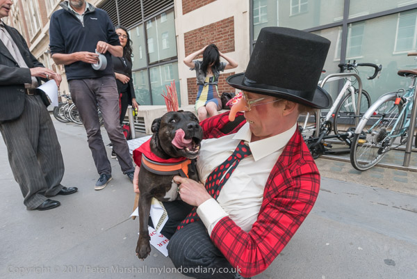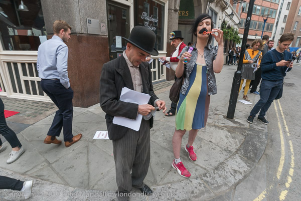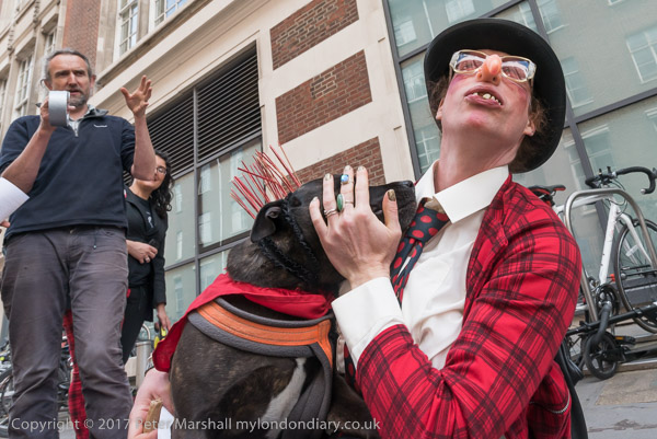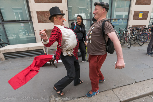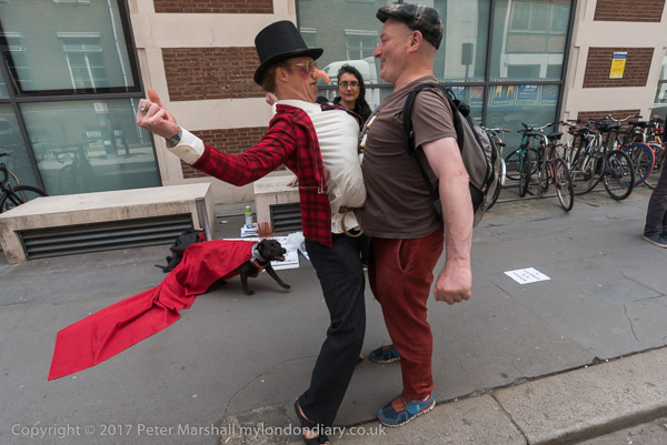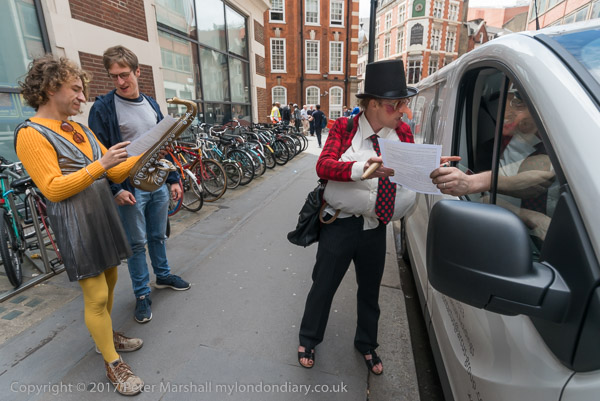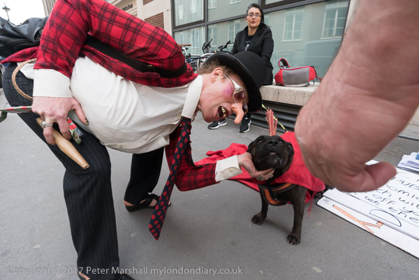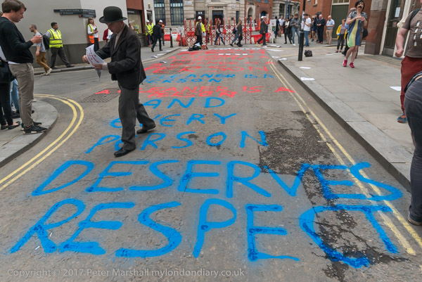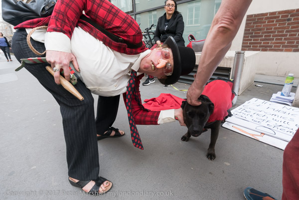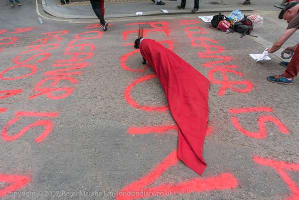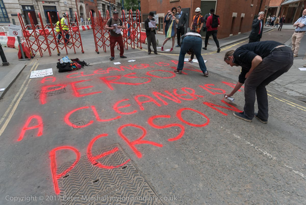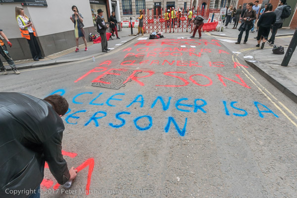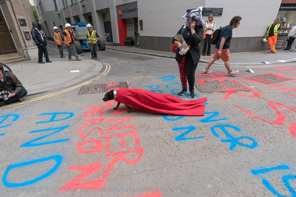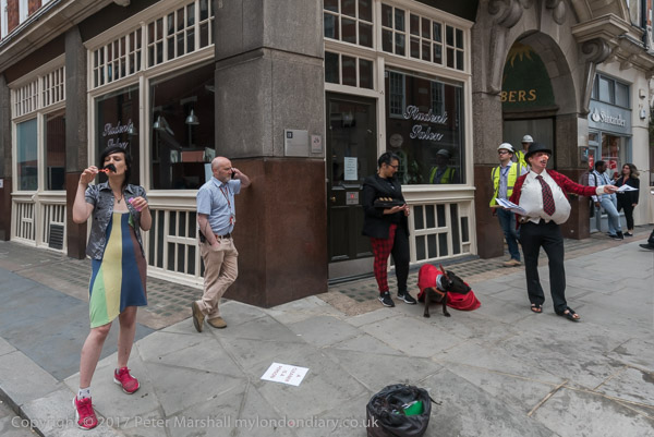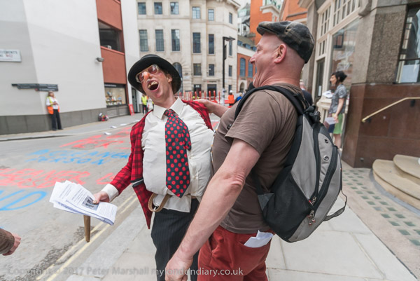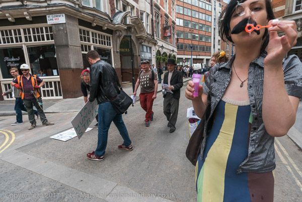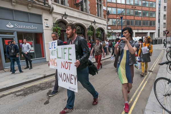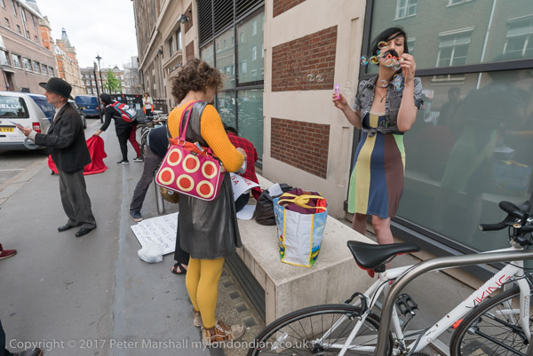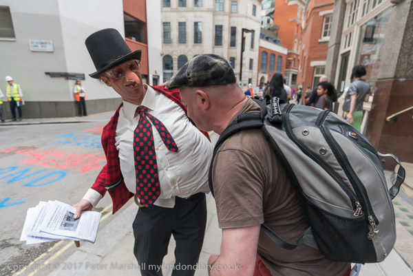 Others chant 'London School of Exploitation' , hand out leaflets and