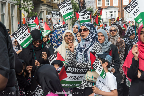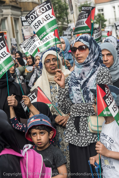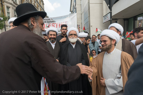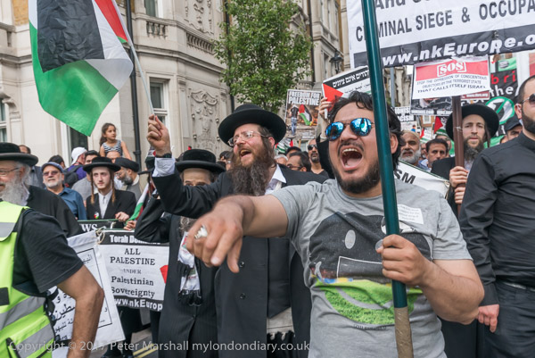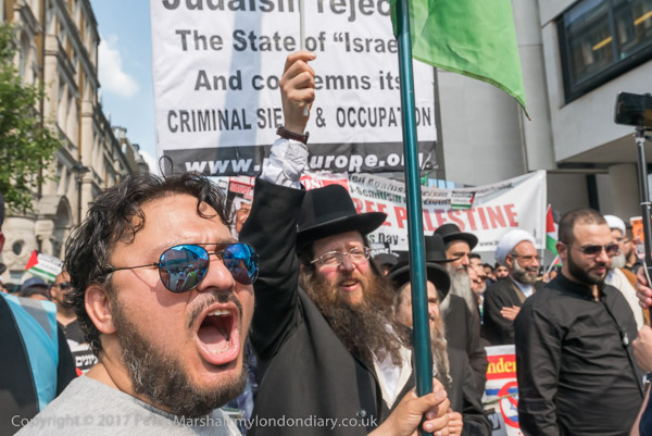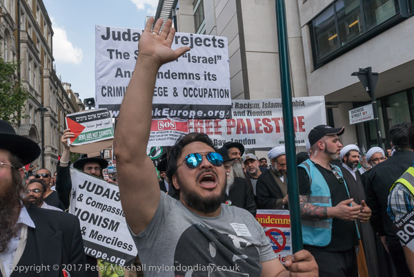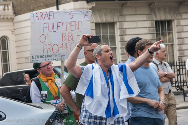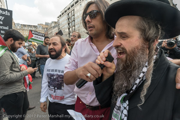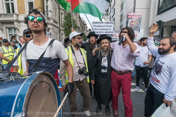 Stewards hold back a drummer who tries to go and argue with the Zionists