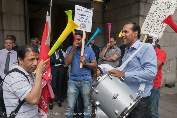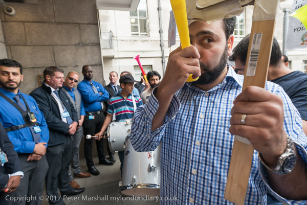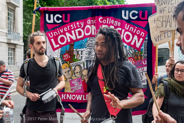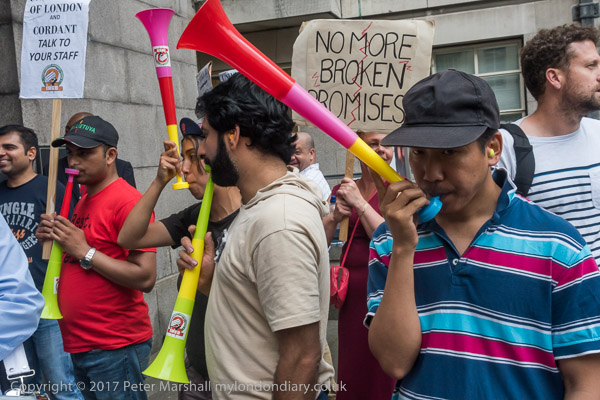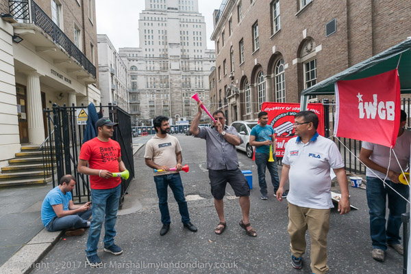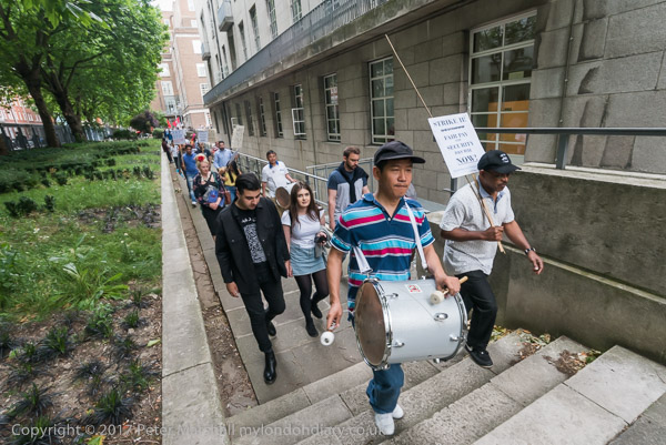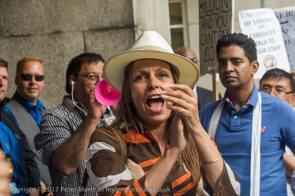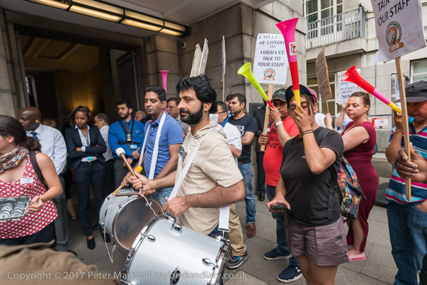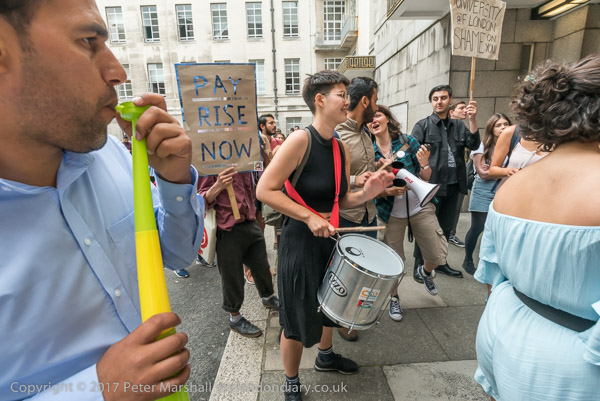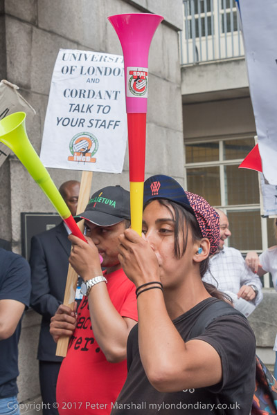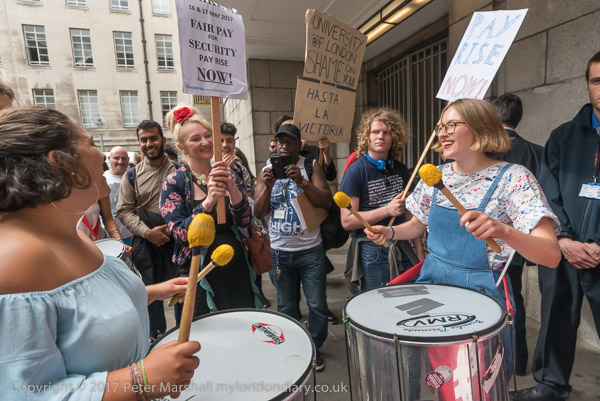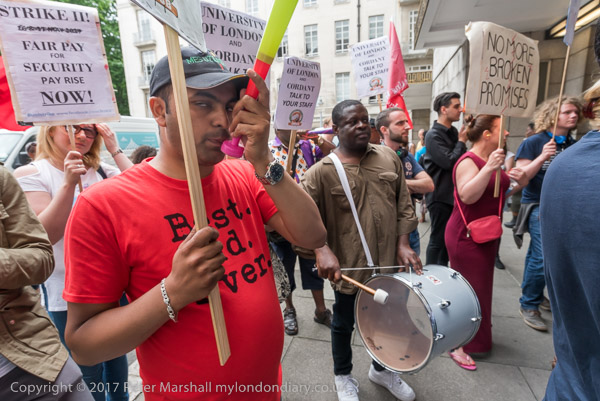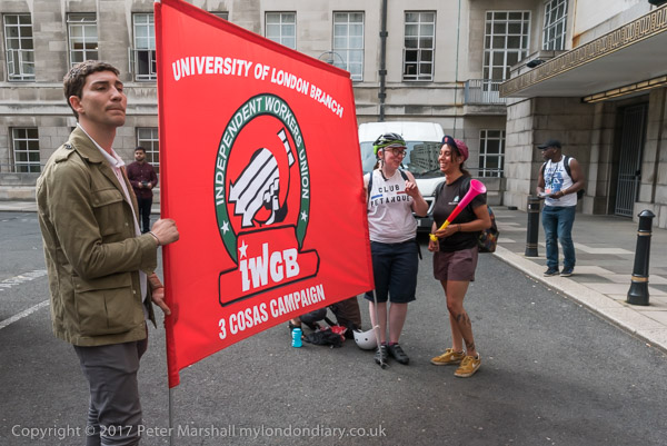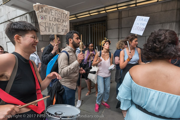 Striking Security Officers had been on the picket line all day outside the east entrance leading to Senate House