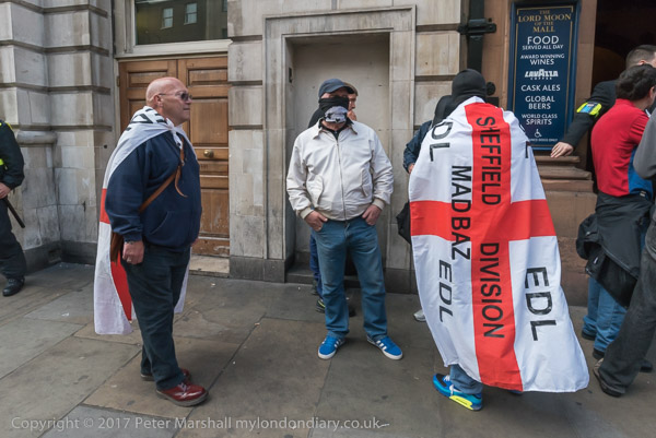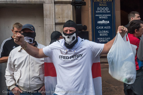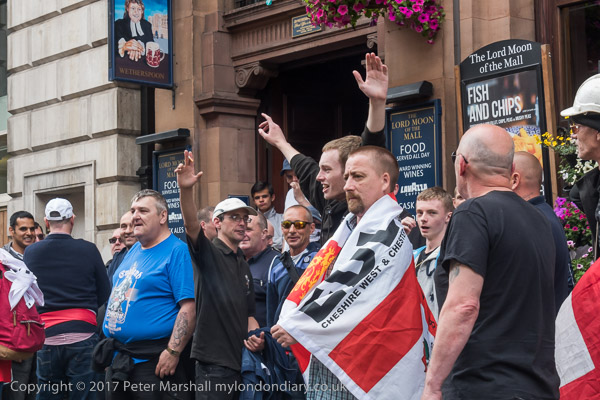 People walk past the EDL outside the pub