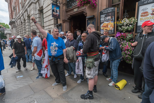 which is gathering inside and outside a pub in Whitehall